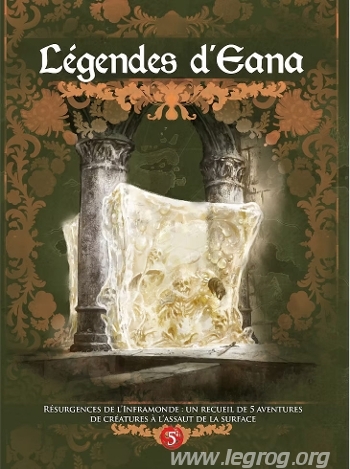 Les Légendes d’Eana sont des recueils d’aventures pour Dragons/Fateforge réunissant 5 scénarios autonomes autour d’une thématique commune. Ces scénarios ne nécessitent que les livres Aventuriers et Grimoire pour être joués — les périls, créatures, règles optionnelles et objets magiques étant fournis en annexe. Résurgences de l’Inframonde, second livret de ce format, met en scène l’émergence à la surface d’Eana de dangers habituellement cantonnés loin sous terre, comme des vases ou des oxydeurs.