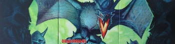 SL-Skärm (Écran de Jeupropose, côté joueurs, une illustration extraite de la couverture du livre de règles avec un gros plan sur le dragon.