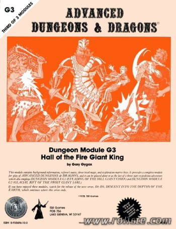 Hall of the Fire Giant King est un module de tournoi destiné à un groupe de 5 à 10 personnages expérimentés (niveau 9 ou plus). S'il peut être joué comme une aventure indépendante, ce module est surtout le troisième et dernier volet de la Trilogie des Géants commencée dans G1 - Steading of the Hill Giant Chief et G2 - The Glacial Rift of the Frost Giant.