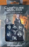 Ce set de dés contient donc 7 dés différents (d20, d12, dé dizaines, d10, d8, d6 et d4) de couleur noire et dont les inscriptions chiffrées sont phosporescentes.