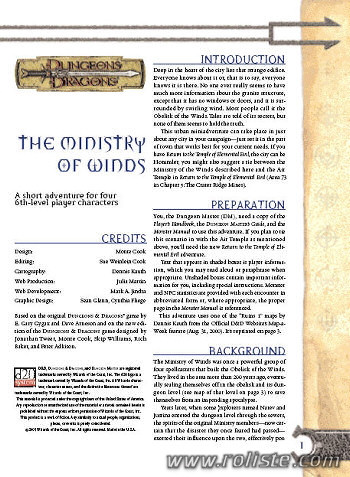 The Ministry of Winds (Le Ministère des Vents) est une courte aventure destinée à un groupe de quatre personnages de niveau 6 et jouable en une seule séance.