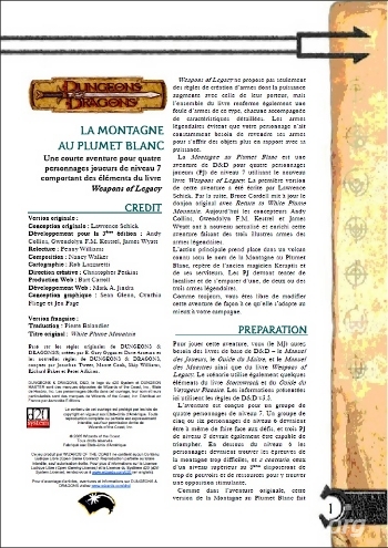 White Plume Mountain est une aventure classique de D&D datant de 1979 pour sa première édition et de 1981 pour la deuxième. En 1999, à l'occasion du 25e anniversaire du jeu, il a été réimprimé quasiment à l'identique en même temps que sortait une suite, Return to White Plume Montain.
