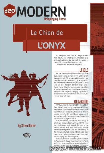 Ce scénario en quatre scènes s'adresse à des personnages entre le premier et le troisième niveau. Il met en scène un mage elfe qui en 1780 se fait embastiller, perdant au passage un Chien d'Onyx (d'où le scénario tire son nom). Les années passent et il cherche à remettre la main sur ce Chien qui a changé de propriétaire.