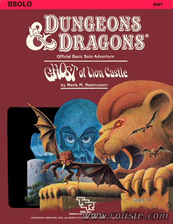 Ghost of Lion Castle est une aventure en solo construite sur le même principe que les "livres dont vous êtes le héros", mais utilisant les règles du Basic Set. Le joueur peut y incarner le héros de son choix (niveau 3 maximum) ou opter pour l'un des aventuriers prétirés fournis dans le livre. Le personnage va explorer le Château du Lion, l'antique demeure d'un puissant sorcier, afin de tenter de s'emparer de ses richesses. Comme les livres-jeu dont il s'inspire, ce scénario se compose de paragraphe numérotés offrant des choix multiples. Les premiers paragraphes expliquent d'ailleurs au joueur comment utiliser les règles du Basic Set en conjonction avec cette aventure.