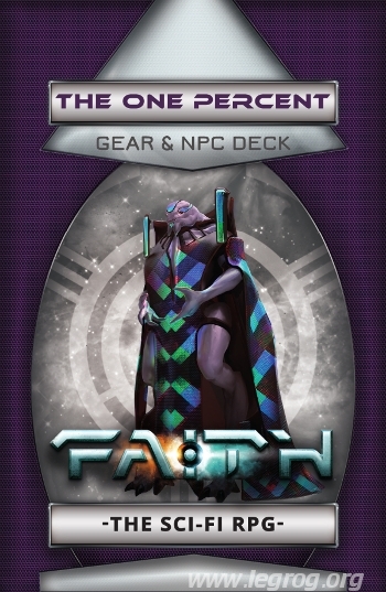 The One Percent – Gear & NPC Deck est consacré à des PNJ nommés et uniques issus de l’univers développé dans le Core Rulebook, et à certaines pièces d’équipement tout aussi uniques qui ne peuvent se trouver que par leur biais.