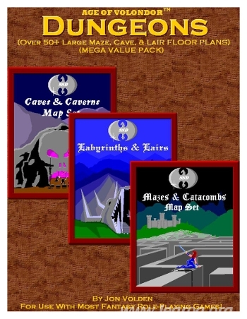 Dungeons est une compilation de plans, qui regroupe en un seul produit trois sets précedemment sortis (Cave & Caverns Map Set, Labyrinths & Lairs Map Set, Mazes & Catacombs Map Set) pour un total de 60 plans en pleine page.