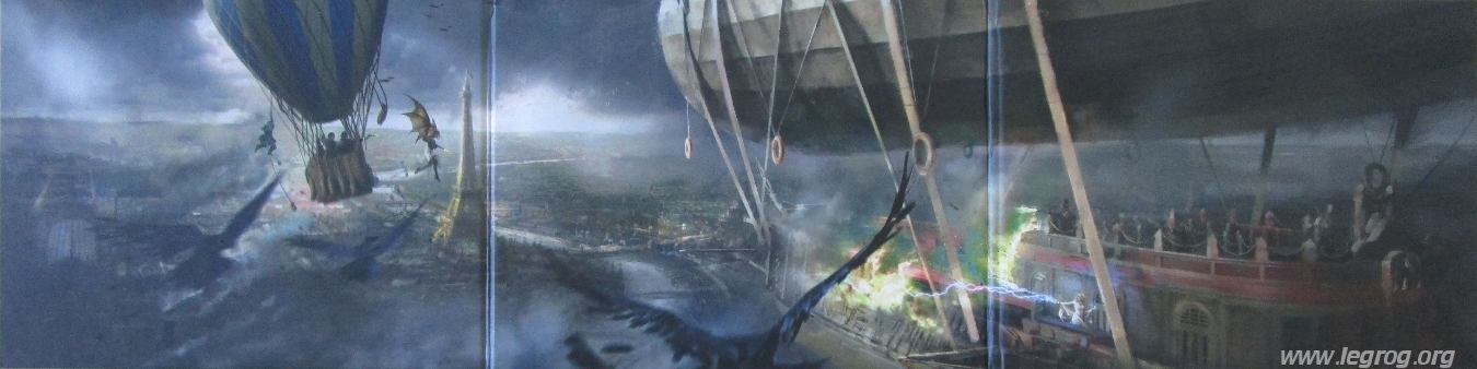 L’écran, côté joueur, propose une illustration différente de l’écran contenu dans le supplément Les Rêveurs. Elle représente une scène de combat aérienne entre un ballon et un dirigeable au-dessus de la ville de Paris. Côté meneur de jeu, son intérieur contient les tables suivantes :