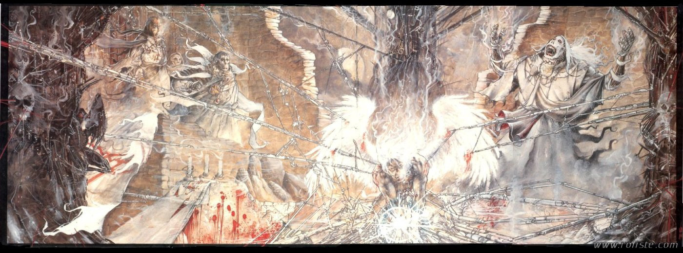 La scéne est également fabuleuse. Un ange torturé par des Démons et des Princes-Démons. Trés beau. Le scénario est très marrant aussi. Les multiples intrigues qu'il contient devraient bien faire bosser vos pjs.