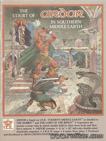 Avec Angmar et Umbar, the Court of Ardor fait partie des suppléments mythiques de la 1ère édition qui s'arrachent à prix d'or sur les marchés de l'occasion. Ayant eu l'occasion d'en avoir un exemplaire entre les mains, et bien j'ai été plutôt déçu, même si Court of Ardor est supérieur à Umbar. D'abord, l'éditeur a prit le pari de publier un supplément d'une région du sud qui n'a jamais été développée par Tolkien. Le résultat est plutôt réussi puisque nous avons la description de 8 royaumes plus ou moins antagonistes. Ce qui aurait pu être intéressant est néanmoins baclé par la taille du livret, puisqu'une grande partie est consacrée aux plans (superbes), aux puissants et à leurs objets magiques.