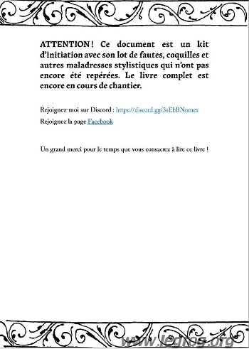 Compétences (5 pages) vient alors expliquer comment sont gérées icelles et présenter les descriptions d’une quinzaine de Compétences.