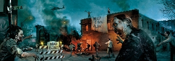 Maintenant, venons en à la raison de mon achat : l'image coté joueur. Parce que si je peux créer un scénario, je suis incapable de dessiner quoi que ce soit... Et cette image, elle est super immersive, avec ses survivants désemparés et cette équipe de secours qui semble dépassée par les zombis. Mes joueurs l'adorent.